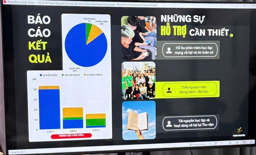 “Các học viên là người điếc của Thành Nguyễn Hairsalon còn hạn chế vốn tiếng Việt nên tại cửa hàng các bạn được học cả ngôn ngữ ký hiệu (NNKH) và tiếng Việt với minh họa bằng hình ảnh hoặc video để có thể tập viết chữ. Qui trình đào tạo học viên bắt đầu từ tìm hiểu Văn hóa điếc, quá trình học tập diễn ra đồng thời với thực hành nghề tóc và thực hành hòa nhập xã hội” – chia sẻ của anh Nguyễn Thái Thành là người điếc -sáng lập và giám đốc của doanh nghiệp xã hội Thành Nguyễn, nơi đã đào tạo hàng trăm học viên người điếc từ năm 2011 đến nay.